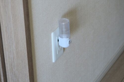 100円で買った(ダイソー)照度センサーで点灯する常夜灯があるのだが、 朝も昼も夜もほぼ常時点灯になっていた。これを感度調整して、適切に消点灯させたい。カバーをあけてみると思いのほか部品が多い。 100VACからLEDの点灯の2VDCを得ることが一番の目的…