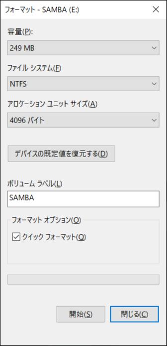WindowsでUSBをNTFSでフォーマットしたら、ラズパイに接続しラズパイを再起動します。