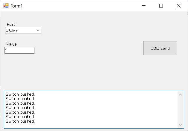 Arduinoに接続したスイッチを押したとき「Switch pushed.」という文字列を送ります。