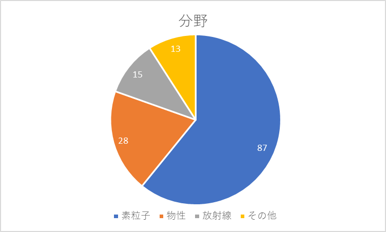 全体の件数は素粒子(宇宙含む)が多くなっています。