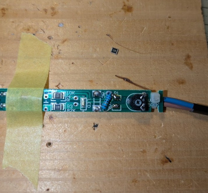 少し回路を見たところ、ダイヤルの可変抵抗に抵抗が並列につながっていて、高温に設定すると0Ω、低温に設定すると68kΩ(合成抵抗)となることがわかりました。
